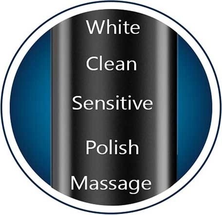 - 5 moduri pentru albire, curățare zilnică, dinți sensibili, lustruire și masaj gingival.