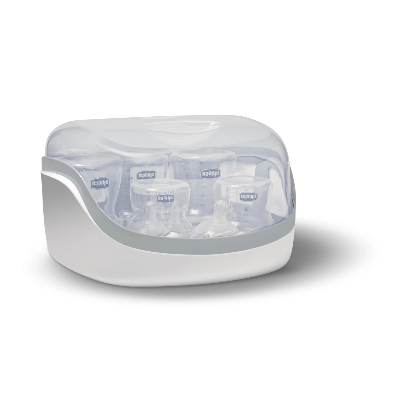 Sterilizatorul pentru cuptorul cu microunde CHICCO este conceput pentru îngrijire rapidă, eficientă și practică a echipamentelor de hrănire a bebelușilor. Utilizează puterea aburului pentru a steriliza igienic biberoanele, tetinele și accesoriile mici fără utilizarea substanțelor chimice. Datorită dimensiunilor compacte încape în majoritatea cuptoarelor cu microunde și se transportă ușor.