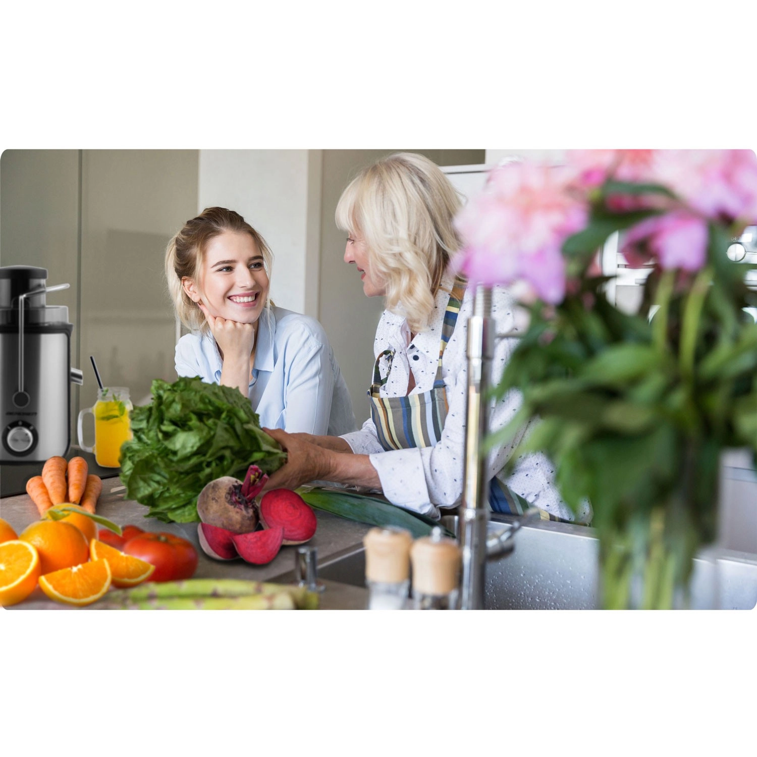 Comuți ușor între 12 000 și 13 000 rpm pentru ingrediente moi sau tari și obții mereu sucuri proaspete și delicioase.