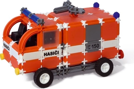 Construiește un autovehicul de pompieri cu platformă ridicătoare, o cisternă mare cu posibilitate de rotație și un vehicul de comandă (tehnic). Nu lipsesc autocolantele tematice „HASIČI, RESCUE, FIRE” și numărul liniei de urgență 150, care îi ajută pe copii să învețe principii importante de siguranță.