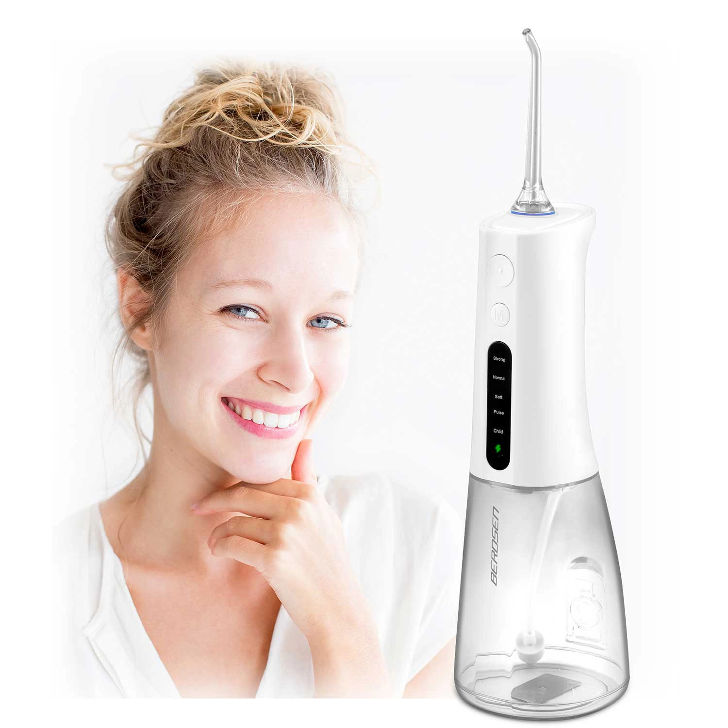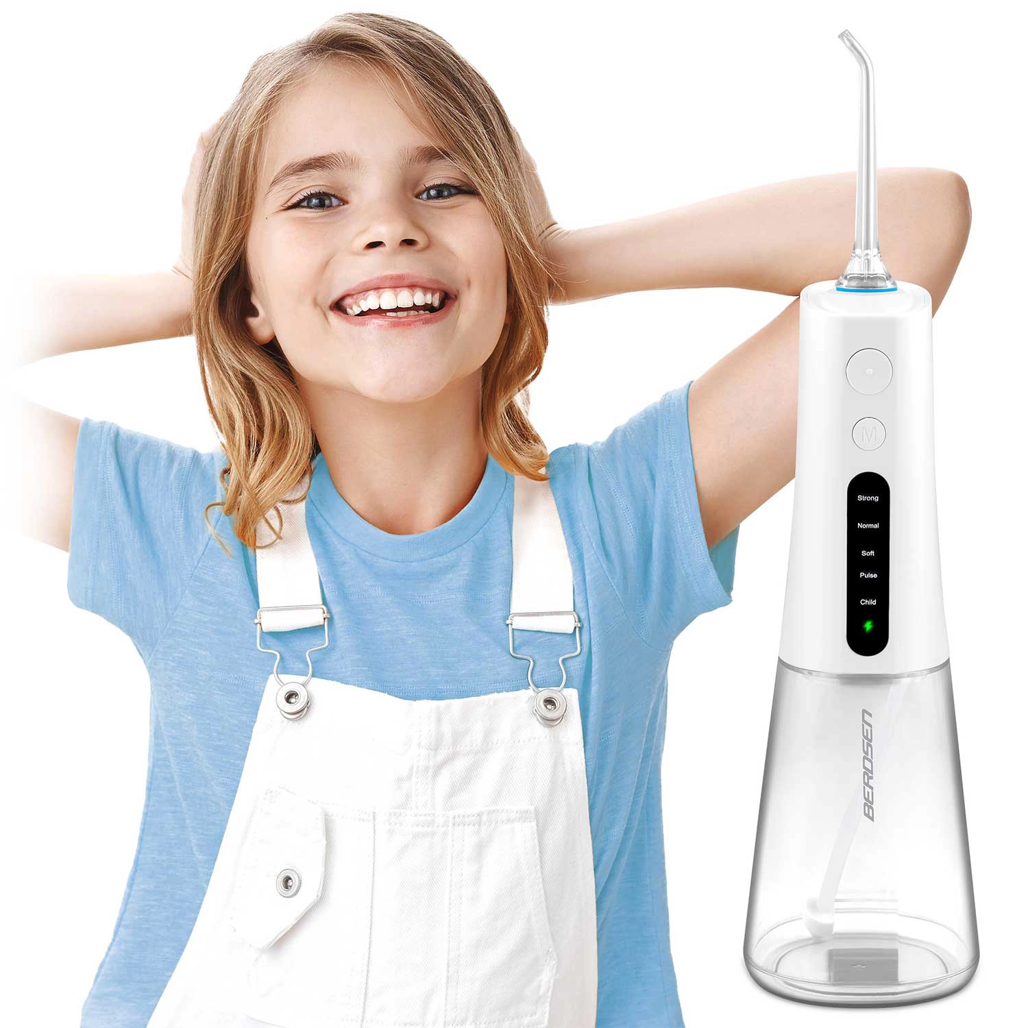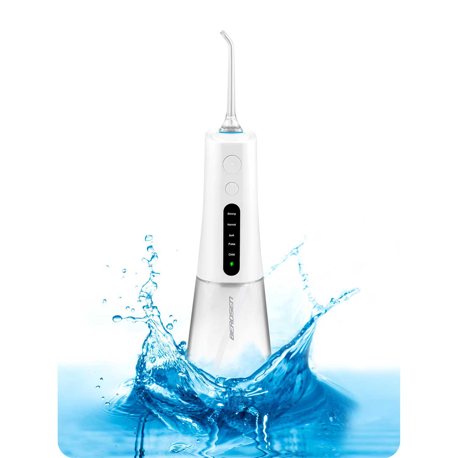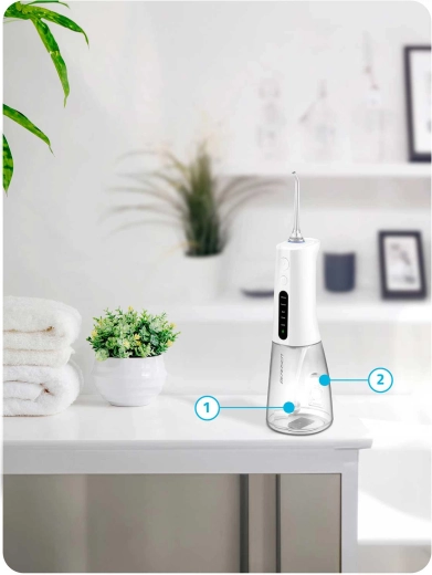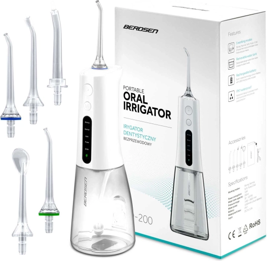 Irigatorul fără fir BERDSEN îndepărtează eficient resturile alimentare, placa și bacteriile din zonele unde periuța obișnuită nu ajunge. Este ideal pentru spațiile interdentare, coroane, punți, implanturi și aparate ortodontice. Jetul subțire de apă cu până la 1800 pulsații/min asigură o igienă precisă și o senzație de prospețime pe tot parcursul zilei.