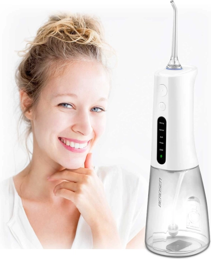 Alege dintre 5 moduri – Strong, Normal, Soft, Child și Pulse – și adaptează presiunea apei nevoilor tale. Rezervorul mare de 300 ml este suficient pentru o irigare completă fără întreruperi, în timp ce duza rotativă la 360° facilitează accesul la toate suprafețele dinților și de-a lungul liniei gingiilor. Funcționare silențioasă ≤72 dB, temporizator de 2 minute și construcție rezistentă la apă IPX7 fac din acest irigator un partener de încredere acasă și în călătorii.