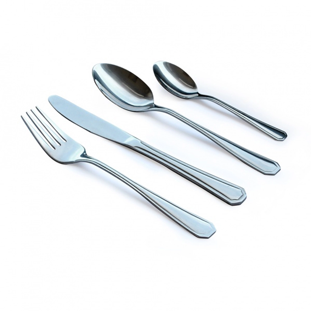 - Echipare completă pentru 6 persoane: 6 cuțite, 6 furculițe, 6 linguri pentru supă și 6 lingurițe pentru cafea