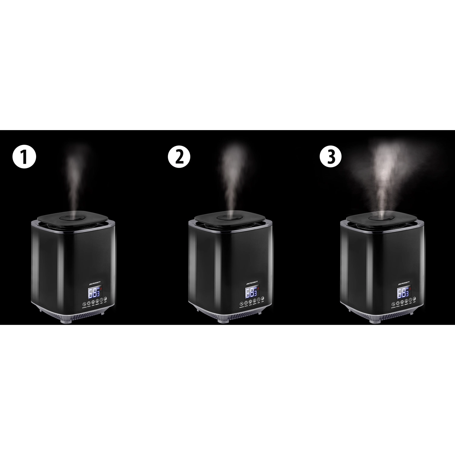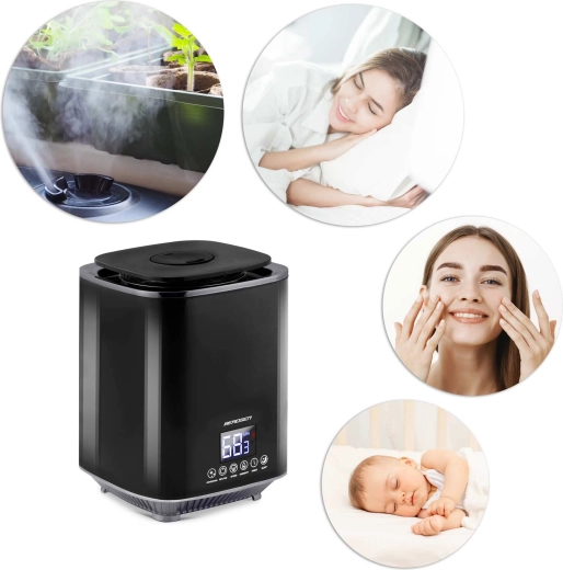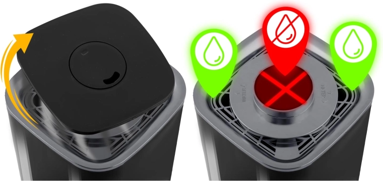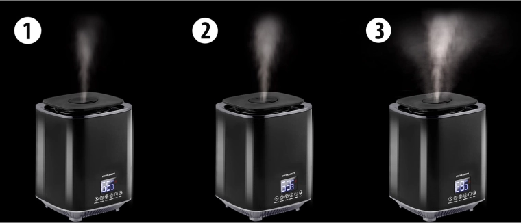 Higrostatul și higrometrul încorporate monitorizează cu precizie umiditatea. După atingerea valorii setate, umidificatorul trece în modul standby și își reia automat funcționarea când nivelul scade.
