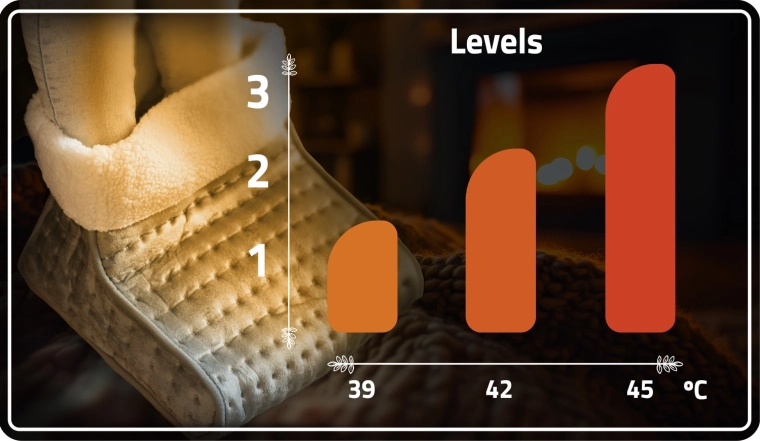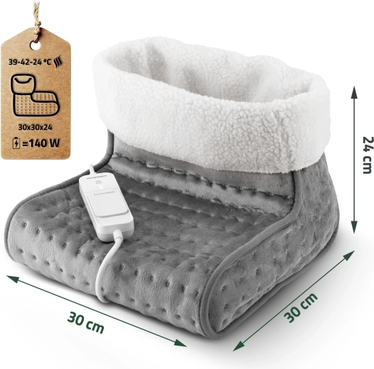 Pentru siguranță maximă, dispozitivul are oprire automată după 90 de minute și protecție la supraîncălzire. Datorită încălzirii rapide (aprox. 2 min), oferă alinare imediată pentru picioarele înghețate, relaxează tensiunea și susține odihna după o zi solicitantă.