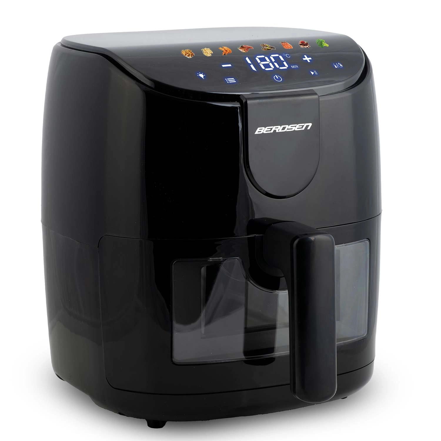 Iubești cartofii crocanți și carnea suculentă fără ulei în exces? Această friteuză cu aer cald BERDSEN cu volum de 4 litri utilizează circulația aerului fierbinte pentru o gătire uniformă – exterior auriu și crocant, interior suculent. Este ideală pentru familii și cupluri, iar datorită ferestrei cu iluminare LED verifici ușor procesul fără întreruperi.