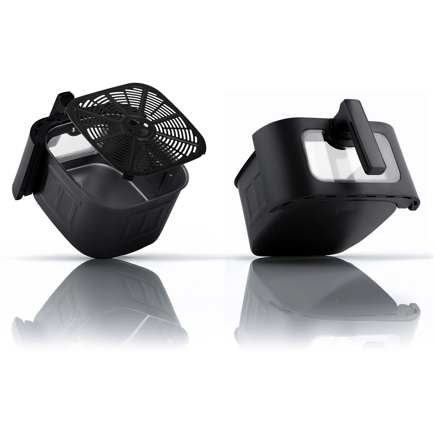Coșul detașabil și tăvița perforată pot fi spălate în mașina de spălat vase. Suprafețele antiaderente cu PTFE facilitează curățarea și îmbunătățesc circulația aerului fierbinte.