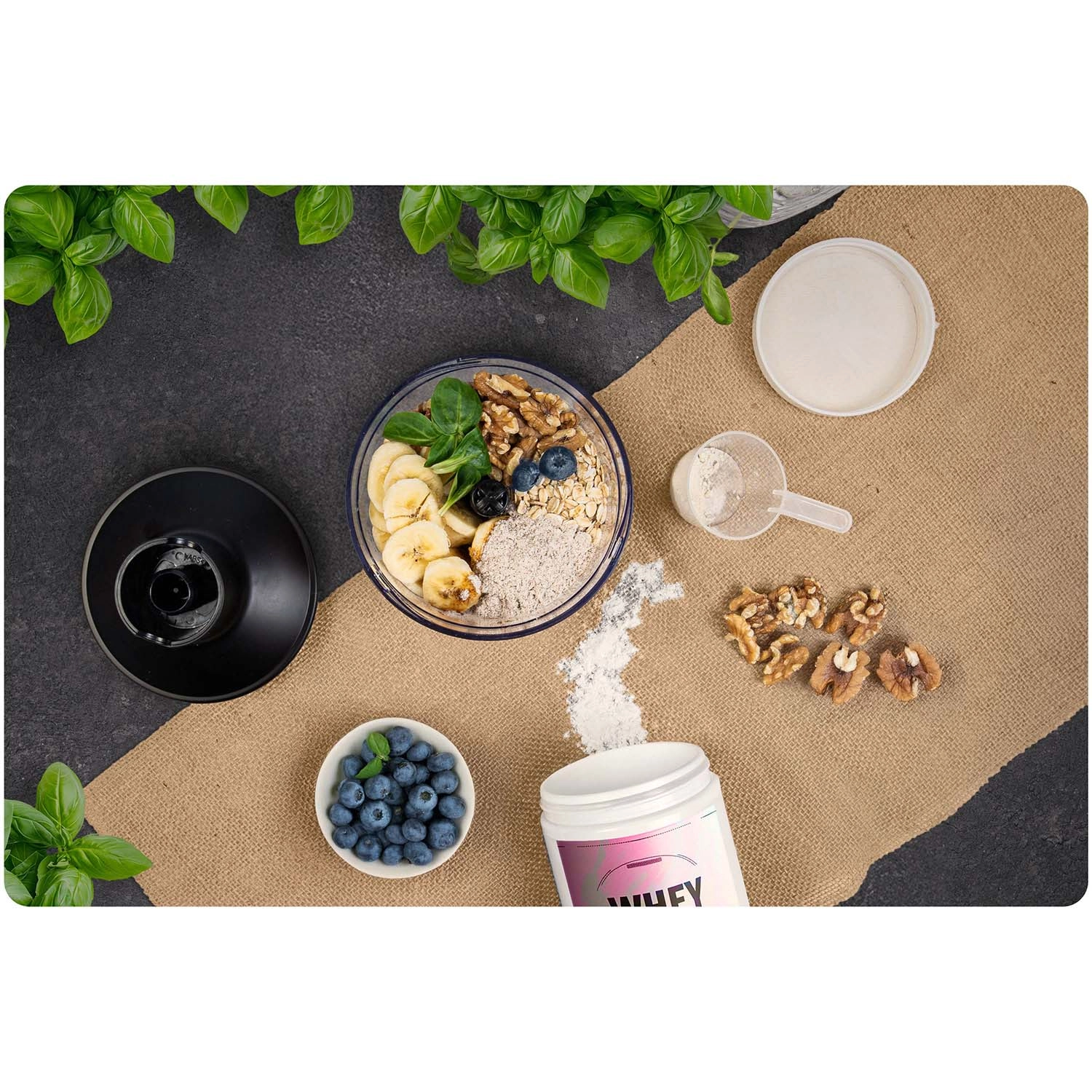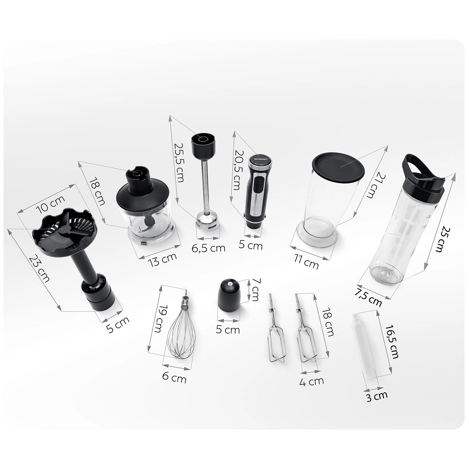 Accesoriile bogate acoperă până la 7 funcții de bucătărie: mixare cu imersie, tocare, batere, frământare/amestecare, preparare de piure și smoothie direct în sticla portabilă de 600 ml (fără BPA) cu guriță comodă și element de răcire. Elementele de siguranță precum siguranța împotriva asamblării incorecte și protecția la supraîncălzire asigură liniște în utilizare.