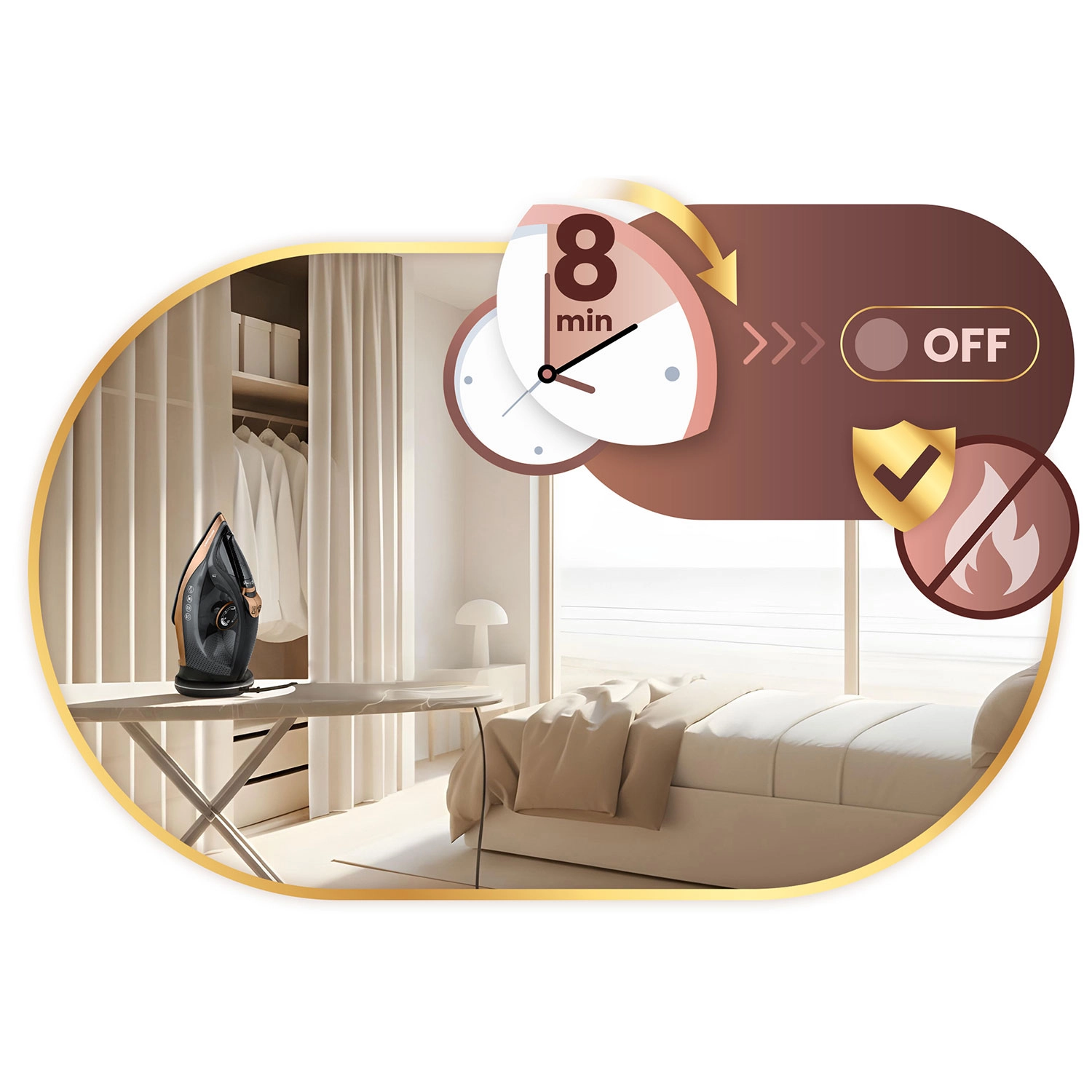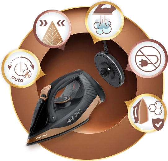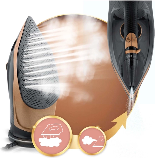 Funcția Auto-Off (Smart&Safe) oprește fierul după 8 minute de inactivitate. Self Clean facilitează curățarea și prelungește durata de viață.
