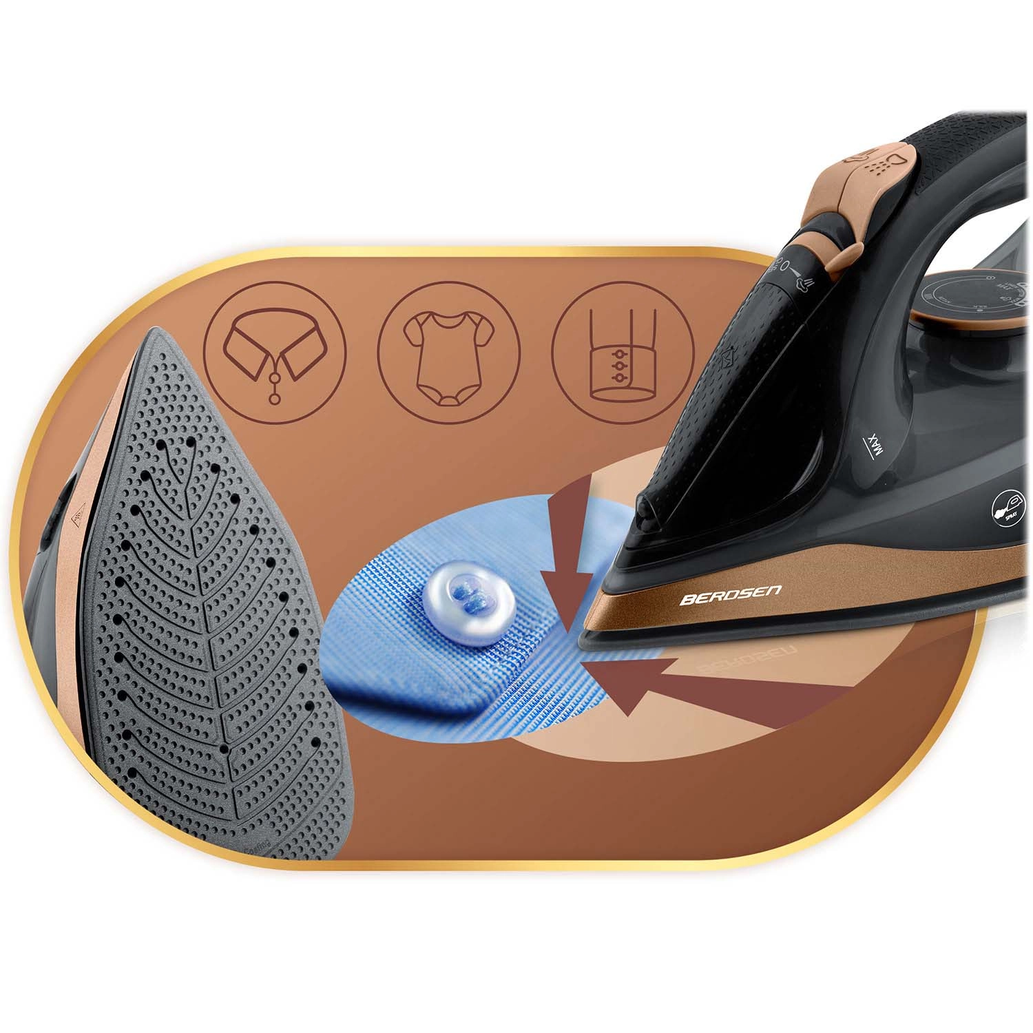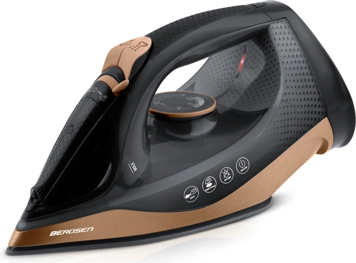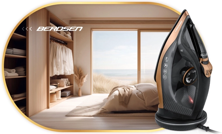 Fierul de călcat Berdsen combină puterea de 2600 W cu o talpă ceramică cu microcanale pentru distribuție uniformă a aburului. Cu abur vertical vei netezi draperiile sau hainele pe umeraș fără a folosi masa de călcat. Rezervorul de apă de 320 ml și spray-ul practic permit umezirea țintită chiar și a celor mai rezistente cute.