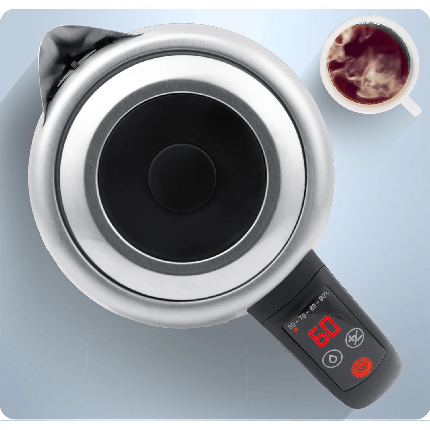 Combinația stilată de sticlă și oțel inoxidabil oferă fierbătorului BERDSEN un aspect modern și o durată lungă de viață. Panoul tactil Soft Touch cu afișaj permite selectarea rapidă a temperaturilor presetate 60/70/80/90/100 °C și ajustarea fină din 5 în 5 °C pentru o preparare perfectă a ceaiului verde, a cafelei prin metode alternative sau a băuturilor pentru copii. Iluminarea LED își schimbă culoarea în funcție de temperatură, astfel încât ai control vizual asupra încălzirii.