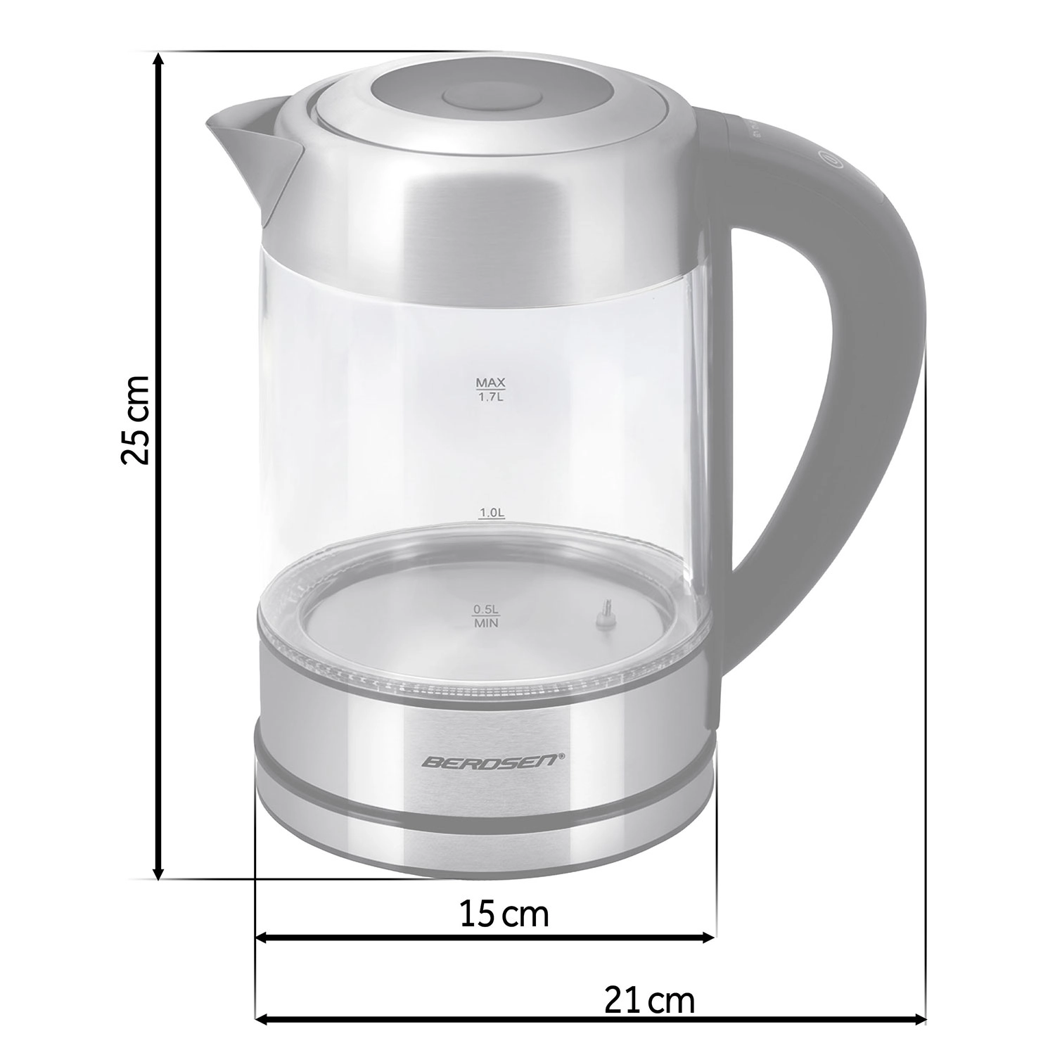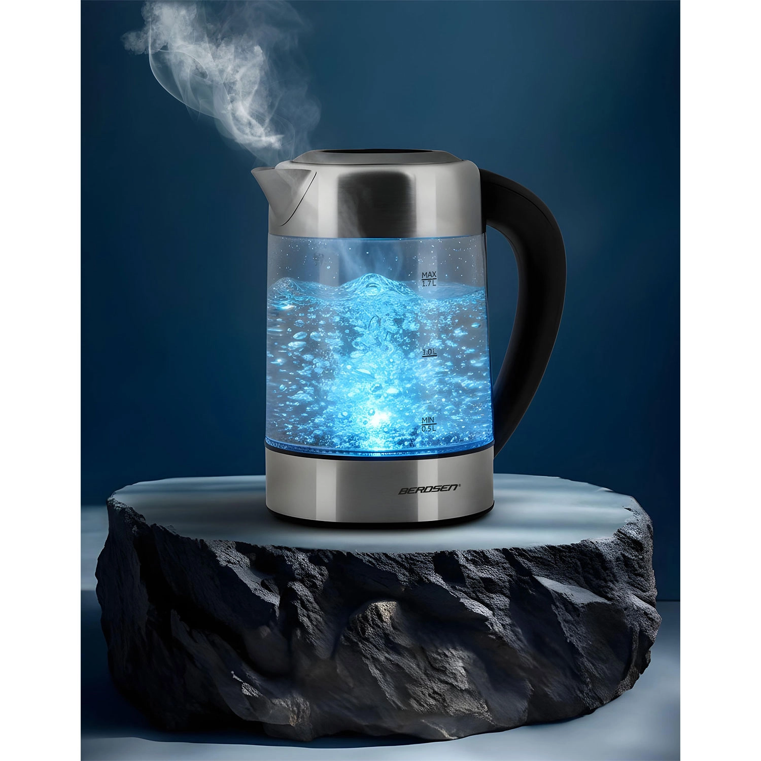 Descoperă fierbătorul modern din sticlă BERDSEN, cu volum de 1,7 l și putere de 2200 W, pentru încălzirea rapidă și precisă a apei. Datorită controlului tactil, măsurării inteligente a temperaturii în timp real și setării temperaturii 60–100 °C, pregătești ceai, cafea și băuturi pentru copii exact cum ai nevoie. Iluminarea LED indică faza de încălzire, sticla din borosilicat asigură gust curat și rezistență, iar protecia de siguranță împotriva funcționării la gol îți oferă liniște în utilizare.