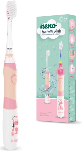 Neno Fratelli transformă periajul de rutină al dințișorilor într-o aventură distractivă. LED-urile colorate cu efect pulsatoriu îi motivează pe copii, în timp ce temporizatorul de 2 minute cu pauze la fiecare 30 de secunde îi ghidează către o împărțire corectă a timpului de periaj. Perii moi din nylon sunt blânzi cu gingiile sensibile ale copiilor și, deoarece nu absorb apa, rămân igienici și rezistenți la deformare.