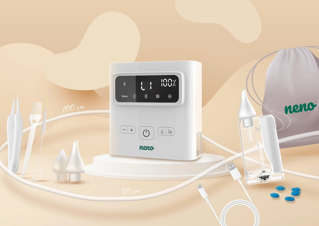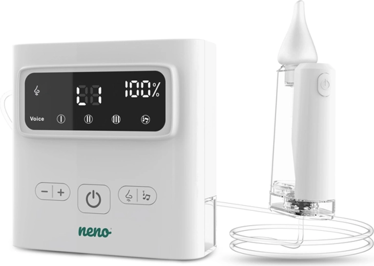 Pachetul include trei capete ergonomice din silicon concepute în funcție de dezvoltarea nasului copilului. Pentru o curățare liniștită, sunt disponibile două melodii și zgomot alb, în timp ce iluminarea LED îmbunătățește vizibilitatea la îngrijirea pe întuneric. Recipientul separat pentru mucus, piesele ușor de spălat și periuțele incluse simplifică semnificativ igiena.