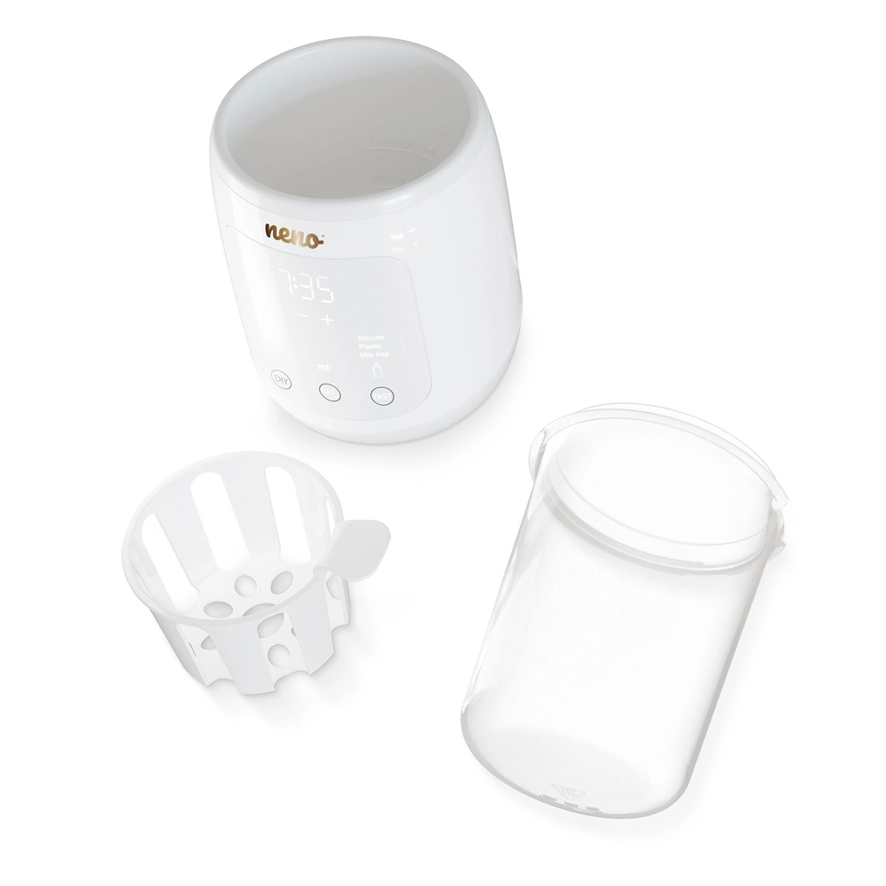 Neno Tocco oferă o modalitate sigură și rapidă de a aduce hrana pentru bebeluși și laptele matern la temperatura ideală. Funcțiile 6‑în‑1 acoperă nevoile zilnice – de la sterilizarea delicată a biberoanelor și suzetelor, la decongelarea sigură a laptelui în punguțe și până la menținerea precisă a temperaturii ori de câte ori este timpul pentru hrănire. Dimensiunile compacte și compatibilitatea universală (până la Ø 77 mm) îl fac o alegere excelentă pentru bucătării mici și pentru călătorii.