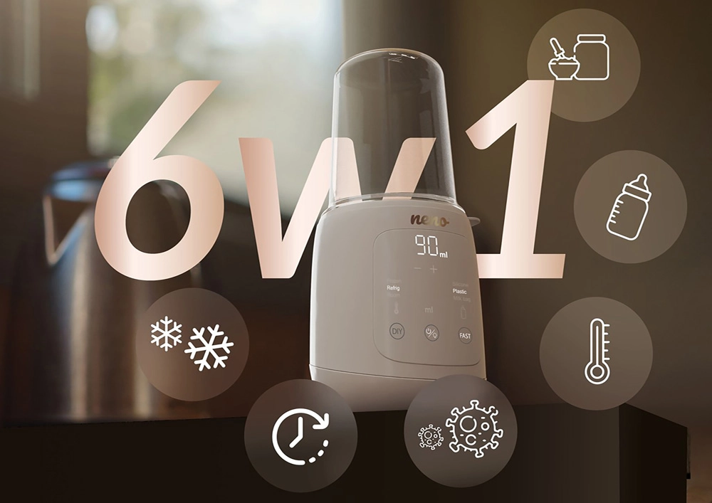 Ușurați hrănirea bebelușului cu dispozitivul multifuncțional Neno Tocco 6‑în‑1. Acest ajutor compact combină încălzirea laptelui, încălzirea piureurilor, decongelarea, sterilizarea cu abur, încălzirea rapidă și menținerea temperaturii. Datorită sistemului inteligent Smart Pro, alege automat timpul și temperatura ideale în funcție de volum, temperatura inițială și materialul recipientului. Panoul tactil intuitiv, lampa LED integrată pentru utilizare pe timp de noapte și designul elegant, minimalist, vor fi apreciate de orice părinte ocupat.