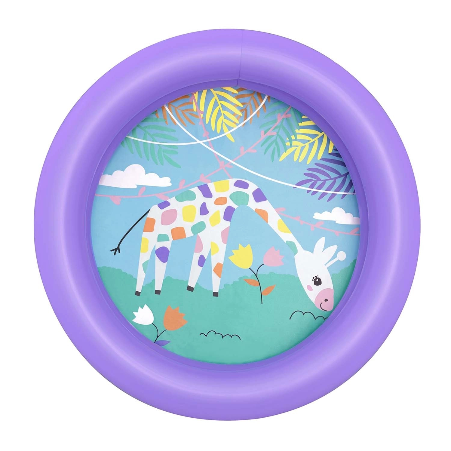 Datorită dimensiunilor compacte și greutății reduse, o transporți și o umfli ușor oriunde – în grădină, pe balcon sau în vacanță. În interior o poți umple cu bile și transforma într-un colțișor de joacă distractiv. Imprimeul colorat de pe fund, cu motiv girafă, stimulează imaginația copiilor și îi invită la explorare.
