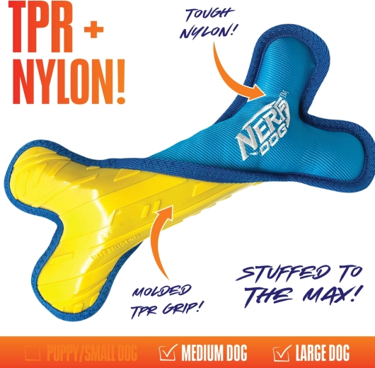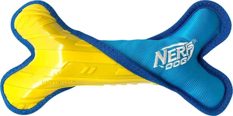 Osul Nerf Dog oferă o combinație inteligentă de materiale pentru un echilibru între rezistență și confort. La interior se află un miez robust din TPR pentru durată lungă de viață, în timp ce stratul exterior din nylon plușat este blând cu dinții și gingiile. Umplutura din polietilenă din interior conferă volum și o textură atrăgătoare, care motivează câinii la joacă.