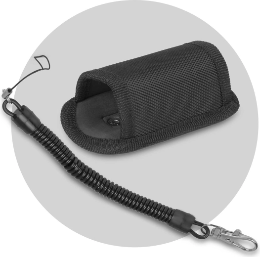 Un singur buton, prindere din cauciuc și LED integrat. În pachet găsiți și husă pentru curea și carabină spiralată pentru purtare în siguranță.