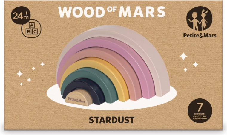 Curcubeul din lemn asamblabil STARDUST, în nuanța Aurora Pink, este o jucărie atemporală care dezvoltă în mod natural imaginația copiilor. Cele șapte semiceruri finisate fin pot fi ordonate, construite și combinate în forme diverse – de la poduri și tuneluri până la leagăne sau trasee cu obstacole. Copiii își exersează astfel motricitatea fină, coordonarea mână–ochi și gândirea logică.