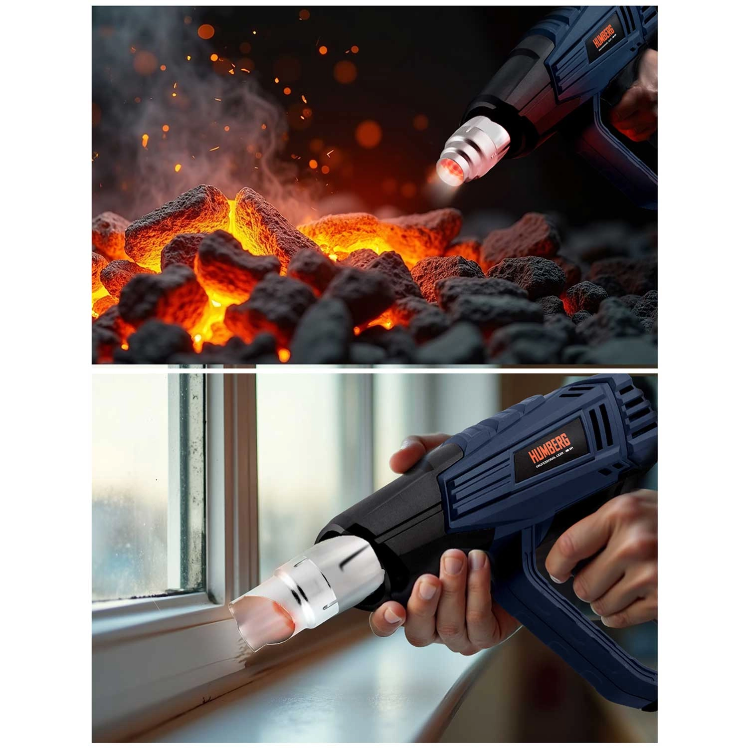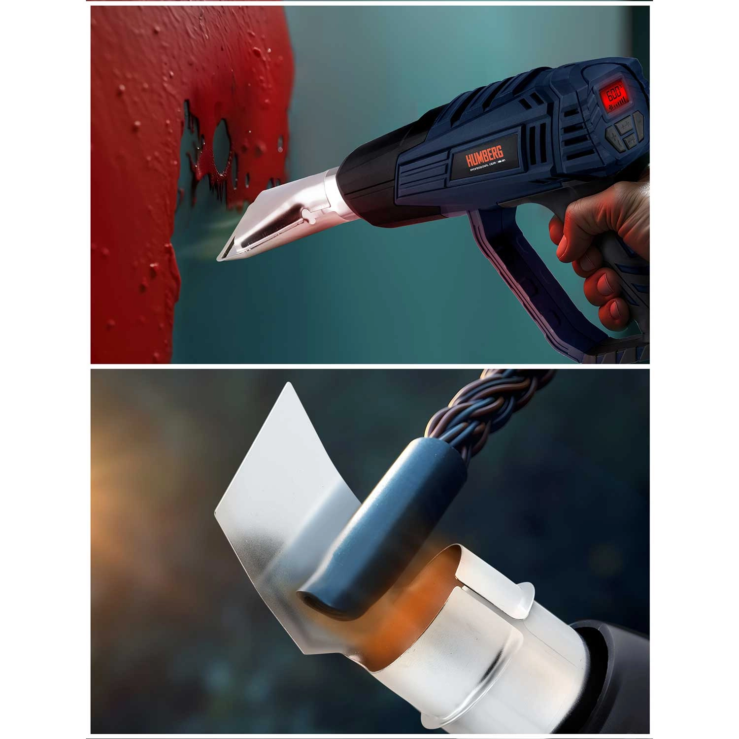 Pistolul cu aer cald HUMBERG este un ajutor de încredere pentru atelier și gospodărie. Datorită puterii de 2000 W și reglajului precis în pași de 60 °C, setați ușor temperatura optimă pentru îndepărtarea straturilor vechi de vopsea, uscare, dezghețare, contractarea tuburilor termocontractabile sau modelarea materialelor plastice. Afișajul LCD color arată clar temperatura selectată și, prin schimbarea culorii, informează despre încălzire și pregătirea pentru lucru.