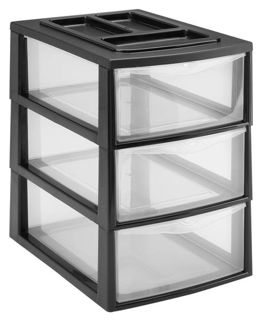 Organizați-vă lucrurile inteligent și fără efort. Raftul din plastic HEIDRUN oferă 3 sertare transparente mai adânci, care pot găzdui documente, jucării, cosmetice și produse de curățenie. Livrarea deja asamblată înseamnă utilizare imediată fără montaj. Construcția ușoară, dar stabilă se transportă ușor, iar datorită suprafeței superioare plane, rafturile pot fi stivuite în siguranță în seturi practice.