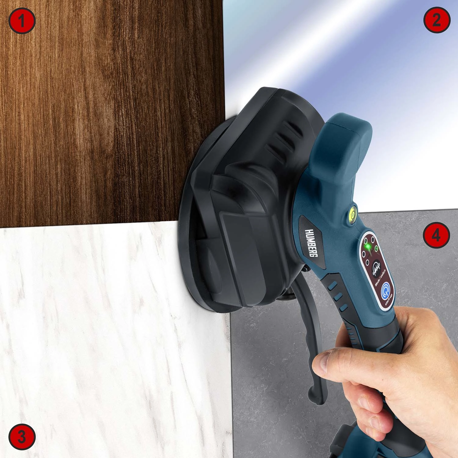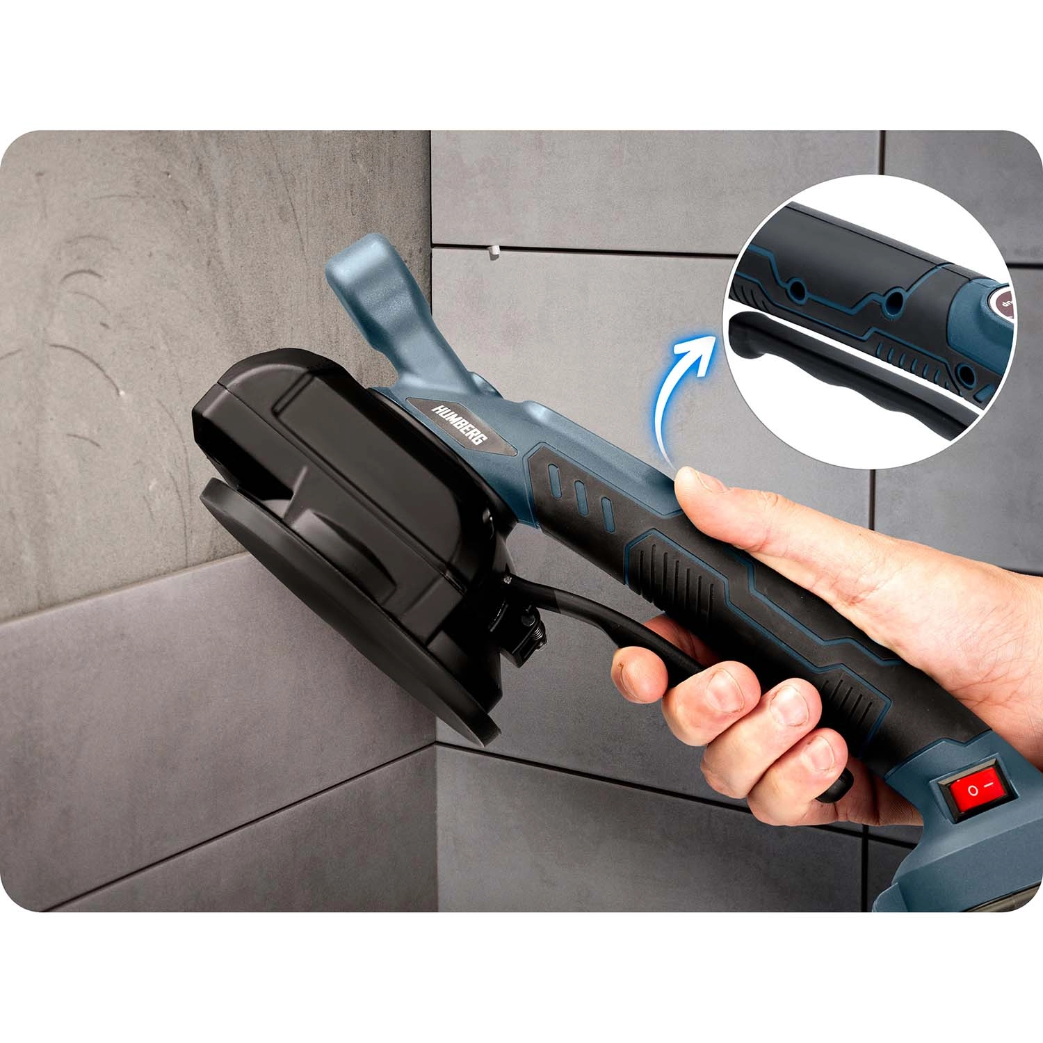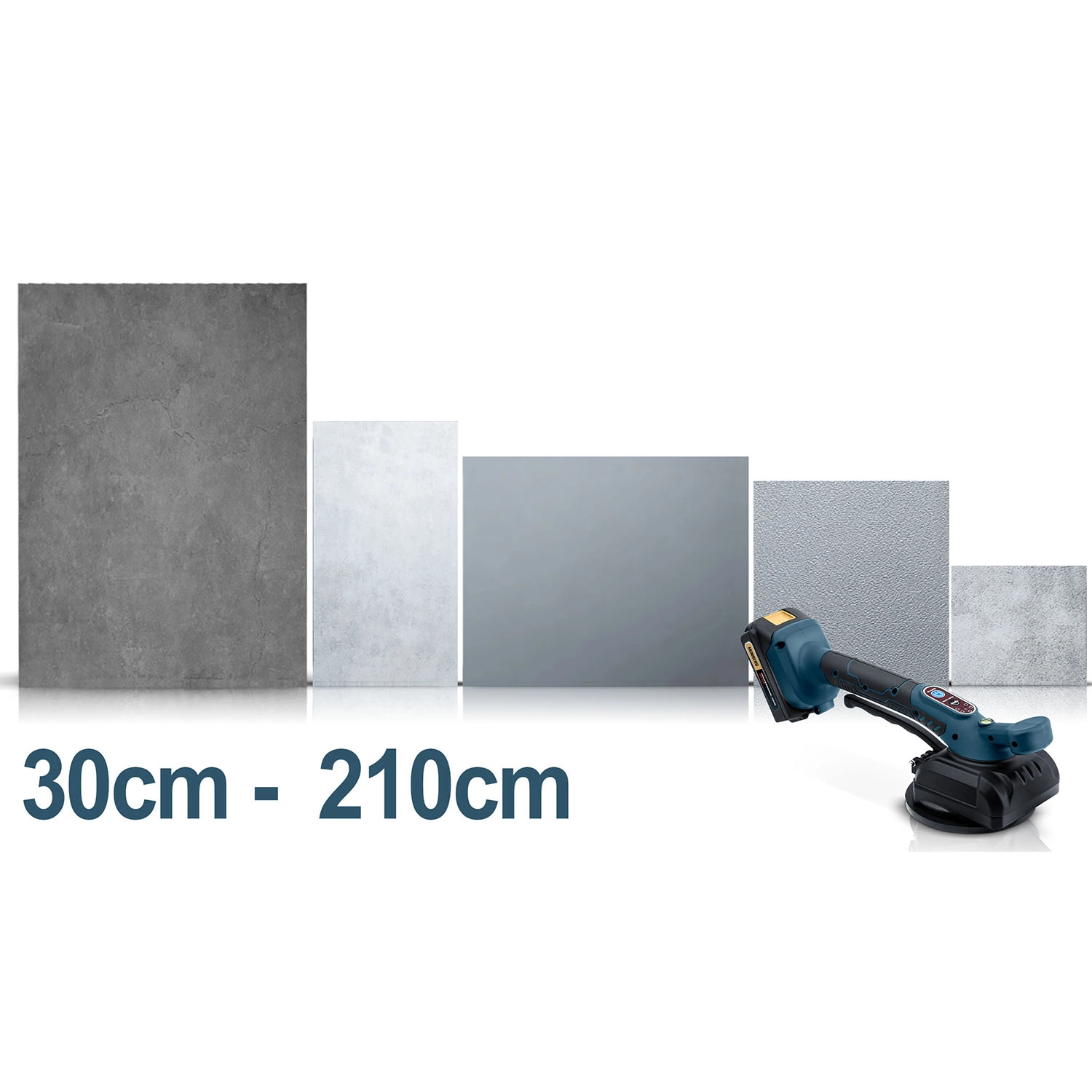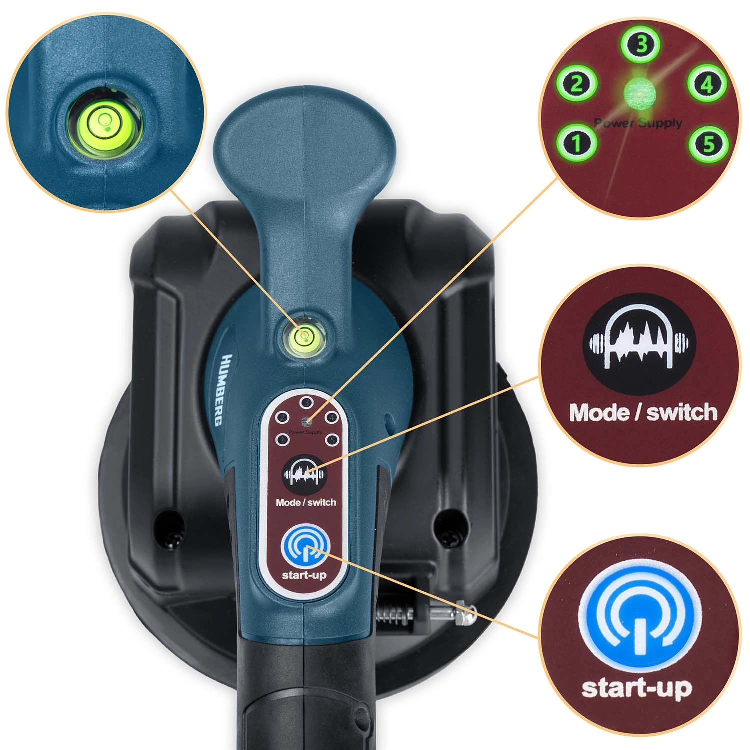 Ventuză profesională electrică cu vibrații pentru plăci ceramice HUMBERG cu capacitate de încărcare de până la 100 kg care accelerează montajul și transportul plăcilor standard și de format mare. Oferă 5 niveluri de vibrații pentru poziționare precisă, autonomie lungă de până la 240 de minute cu două acumulatori și încărcare rapidă în 4–5 ore. Datorită vidului puternic, nivela integrată și sistemelor avansate de siguranță lucrați mai rapid, mai precis și fără riscul deteriorării materialului.