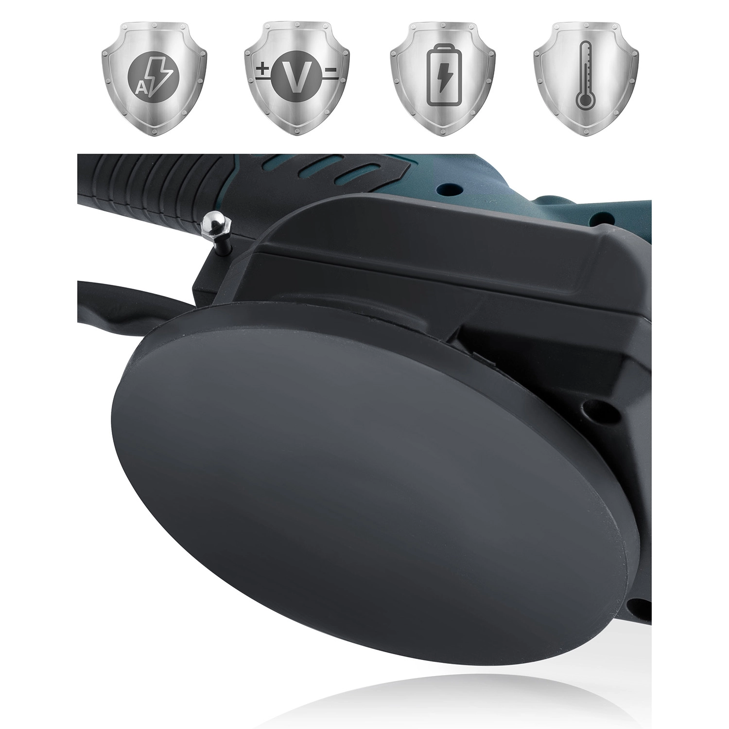 Lucrați fără întreruperi până la 240 de minute. Un acumulator alimentează dispozitivul, celălalt se încarcă. Încărcarea completă în 4–5 ore asigură funcționare fluentă pe șantier.