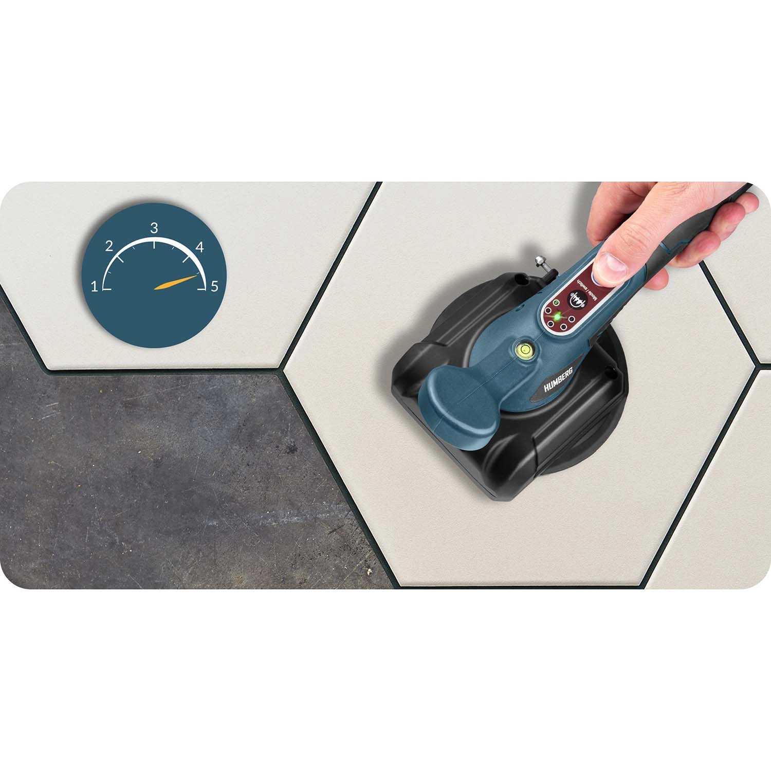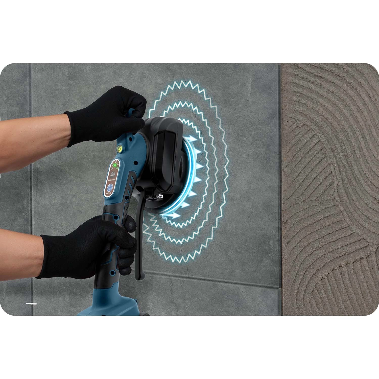 Ventuza vibratorie cu vid HUMBERG combină aderența ridicată cu tehnologia inteligentă de vibrare pentru o așezare perfectă a plăcilor. Vibrațiile ajută la distribuirea uniformă a adezivului, eliminarea bulelor de aer și obținerea unei planeități precise fără presare manuală inutilă. Rezultatul este lucru mai rapid și o suprafață de calitate superioară, fără desprinderi în viitor.