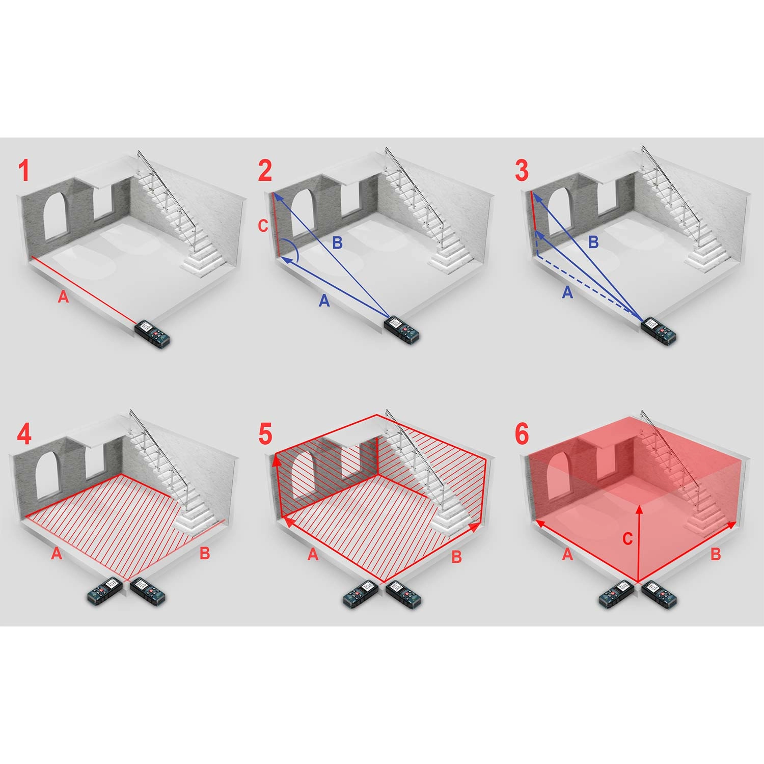 Economisiți timp datorită calculului instant al suprafeței și volumului și măsurării indirecte a înălțimii prin metoda lui Pitagora. Funcția de adunare/scădere accelerează munca pe șantier și la renovare.