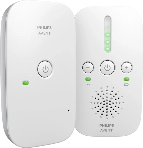 Monitor pentru bebeluși fiabil, cu tehnologie DECT, asigură transmisie audio clară și sigură, fără interferențe până la 300 de metri. Oferă semnalizare luminoasă a sunetului, lumină de veghe, 5 niveluri de sensibilitate și mod ECO pentru un consum redus de energie. Unitatea pentru părinți funcționează la priză și pe baterii pentru flexibilitate maximă.
