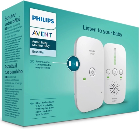 Supravegheați-vă bebelușul cu liniște. Philips Avent SCD502 utilizează tehnologia fiabilă DECT pentru sunet cristalin fără interferențe de la alte dispozitive. Datorită razei de acțiune de până la 300 m, vă puteți mișca liber prin casă și grădină, având siguranța că veți auzi fiecare sunet.