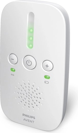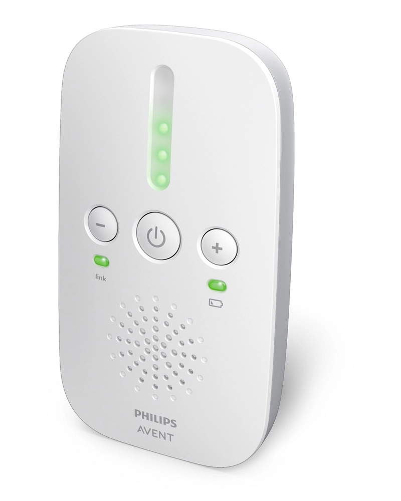 Monitorul este proiectat pentru confort și economisirea energiei. Modul ECO reduce automat puterea de emisie atunci când este posibil, iar indicația luminoasă a sunetului vă avertizează chiar și atunci când volumul este redus. Lumina de veghe ajută bebelușul să adoarmă liniștit. Unitatea pentru părinți poate fi alimentată de la priză sau cu baterii, astfel încât o puteți lua ușor oriunde în casă.