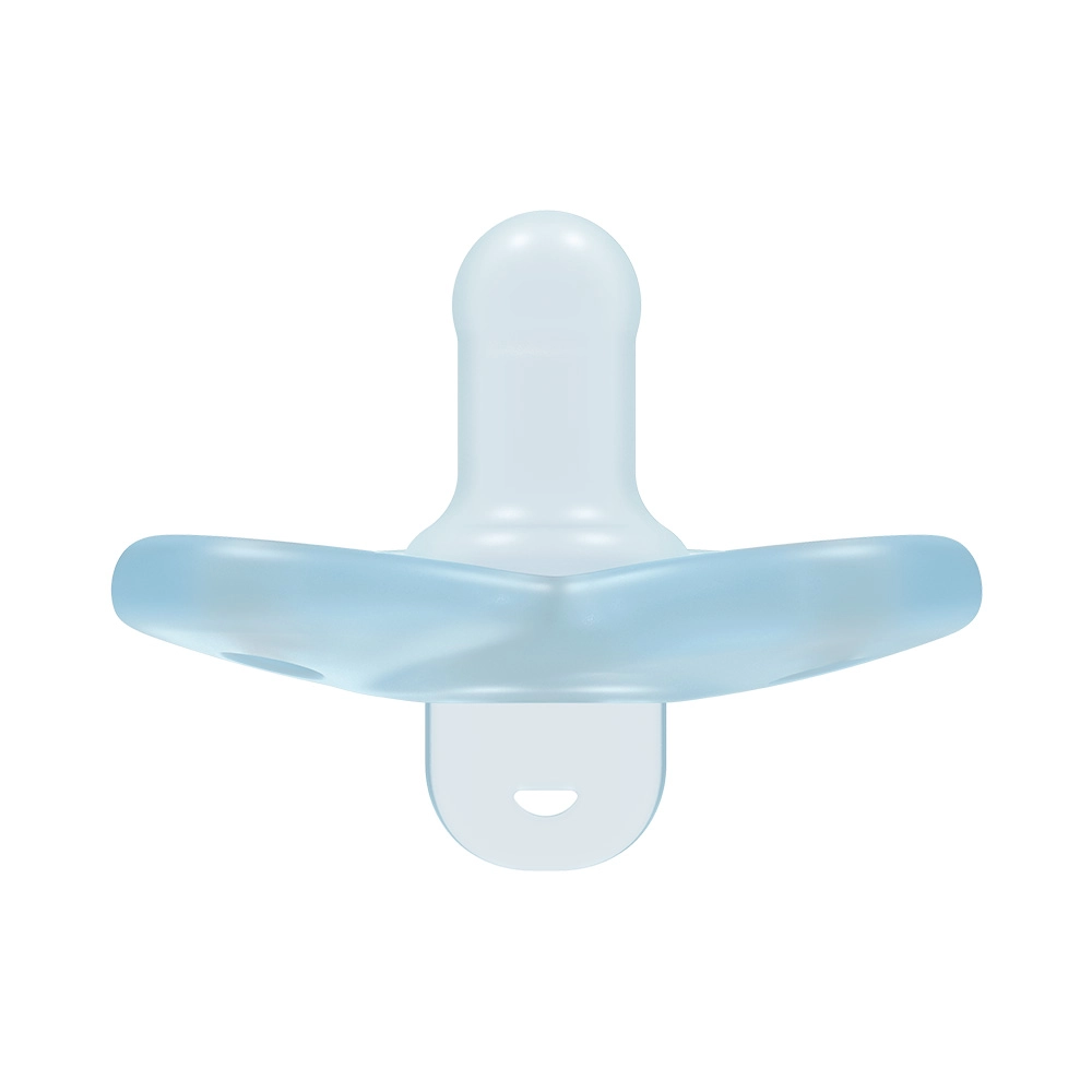 Scutul ergonomic în formă de inimă respectă contururile naturale ale feței copilului și asigură respirație liberă. Tetina rotundă, simetrică este moale, rezistentă și concepută să se așeze natural în gura bebelușului, ajutând la distribuirea uniformă a presiunii limbii.
