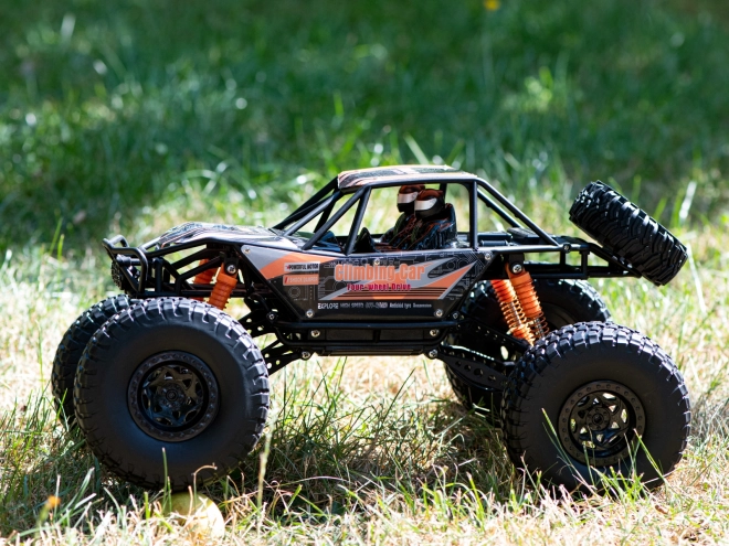 RC Crawler Climbing Car este construit pentru distracție în off-road. Datorită cadrului deschis, suspensiei eficiente și anvelopelor mari, are o trecere excelentă și stabilitate pe roci, pământ și iarbă. Tracțiunea integrală 4WD oferă siguranță la urcare chiar și pe pante abrupte.