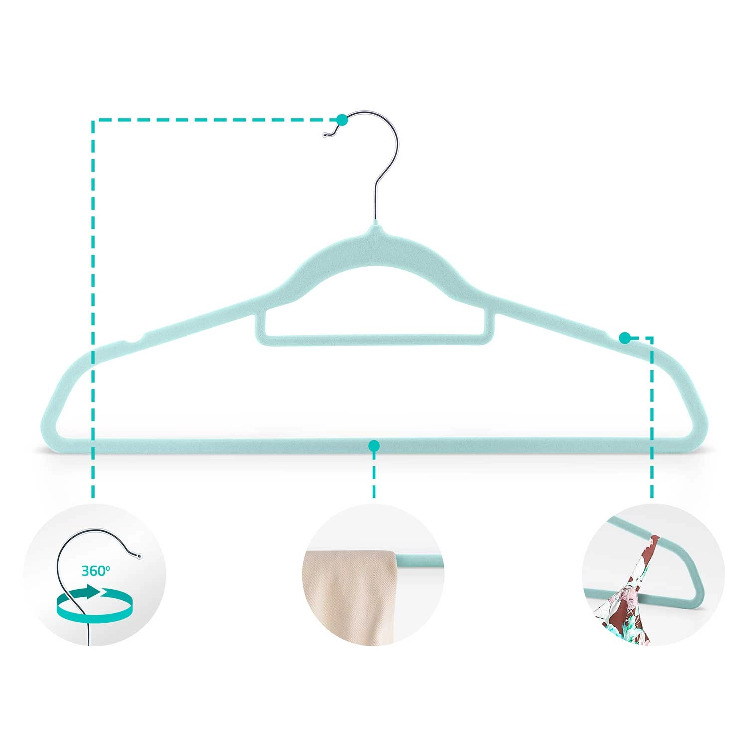 Textura moale, catifelată protejează țesăturile și împiedică alunecarea rochiilor, cămășilor și a topurilor delicate cu bretele subțiri.