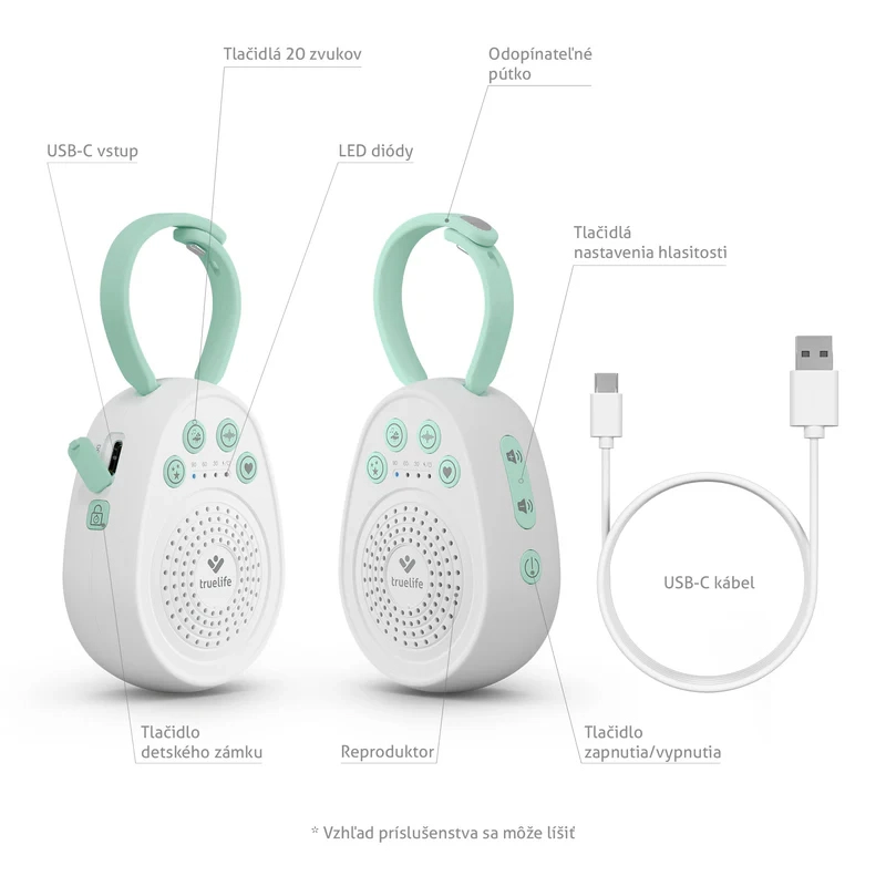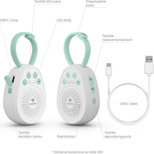 - Adormitor TrueLife BabyTone S3, cablu USB-C, manual