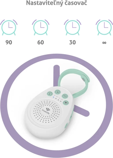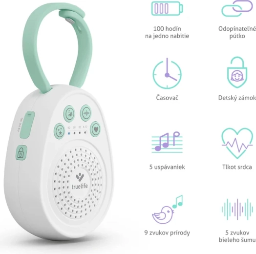 Liniștește-ți bebelușul pentru un somn neîntrerupt cu adormitorul portabil TrueLife BabyTone S3. Oferă până la 20 de sunete liniștitoare, inclusiv melodii, sunete din natură, zgomot alb și bătaie de inimă. Datorită autonomiei de până la 100 de ore, temporizatorului 30/60/90 min, memorării ultimului sunet și curelei detașabile, este ideal pentru pătuț, cărucior și călătorii. Construcția sigură, fără BPA, și blocarea pentru copii asigură o utilizare liniștită și în siguranță.