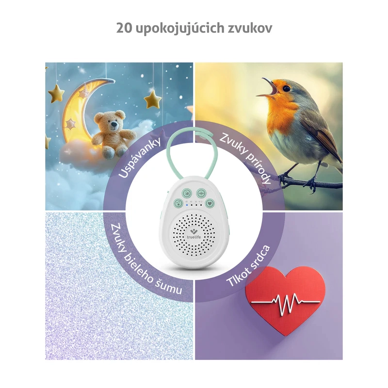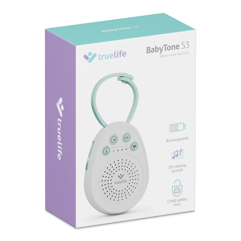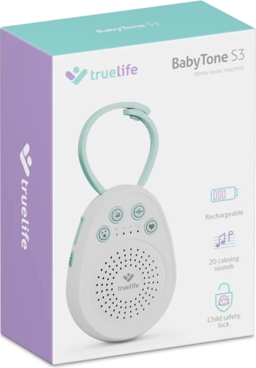 TrueLife BabyTone S3 este un modul compact portabil pentru adormit, care ajută copiii să adoarmă mai repede și să doarmă mai mult. Difuzorul de calitate redă în buclă până la 20 de sunete – de la melodii delicate și sunete ale naturii, până la îndrăgitul zgomot alb și bătaia autentică a inimii, care induce senzația de siguranță cunoscută din perioada prenatală. Datorită memorării ultimului sunet, la pornire se redă automat ceea ce funcționează cel mai bine.