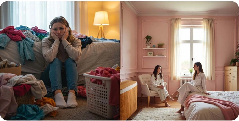 Sacul textil se scoate ușor, se strânge cu șnurul și se transportă la mașina de spălat. O soluție igienică, cu mai puțină dezordine și întreținere facilă.