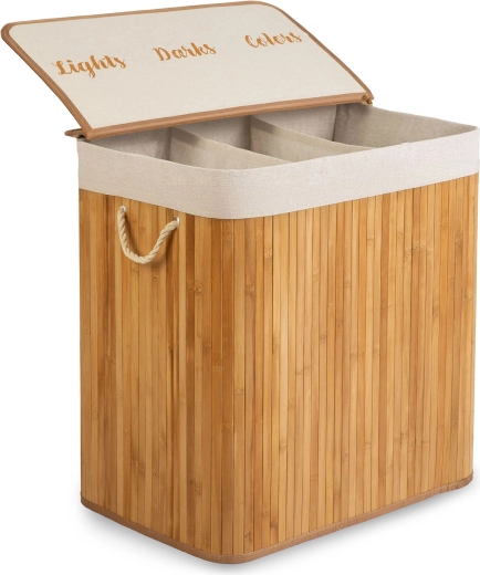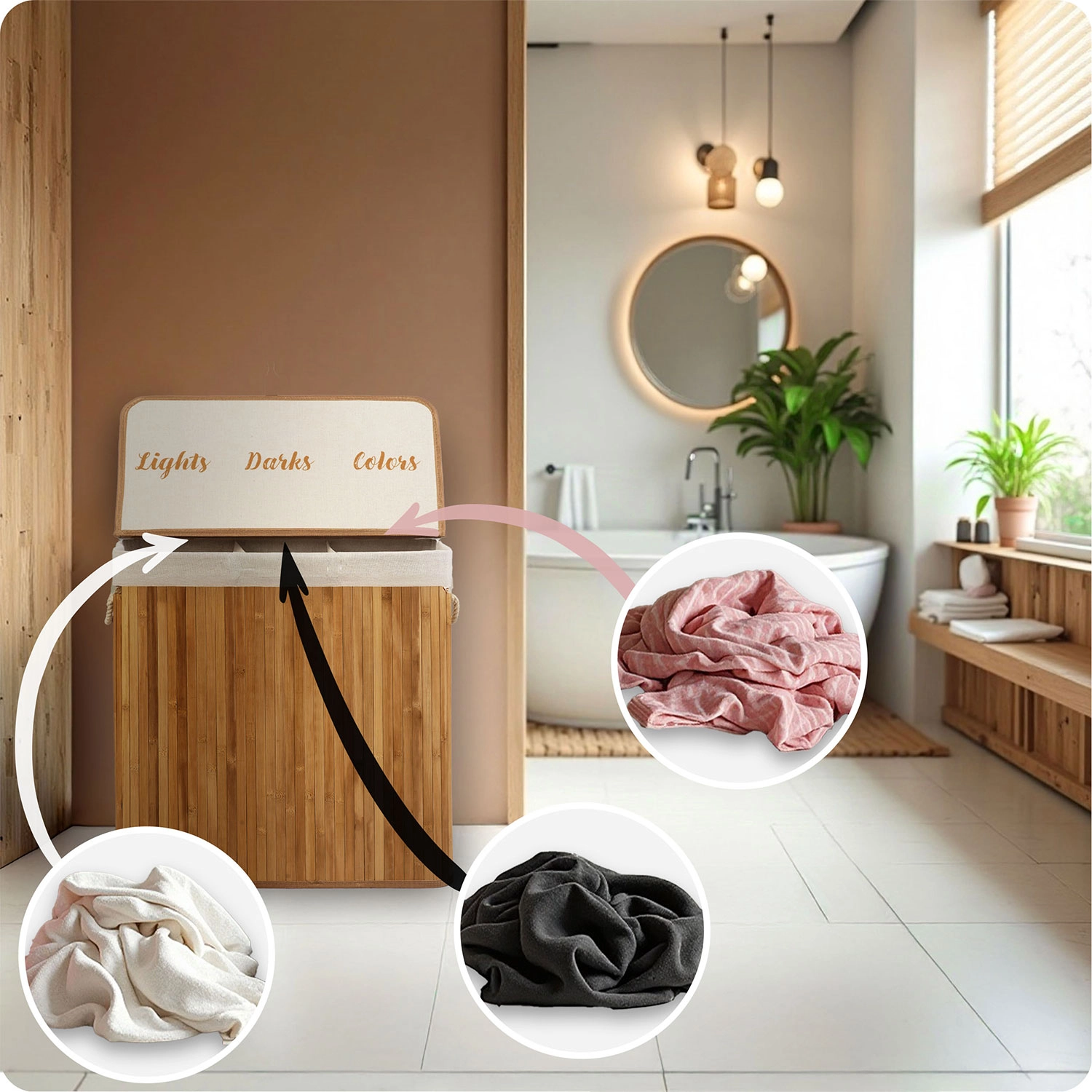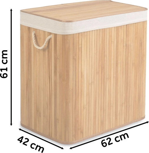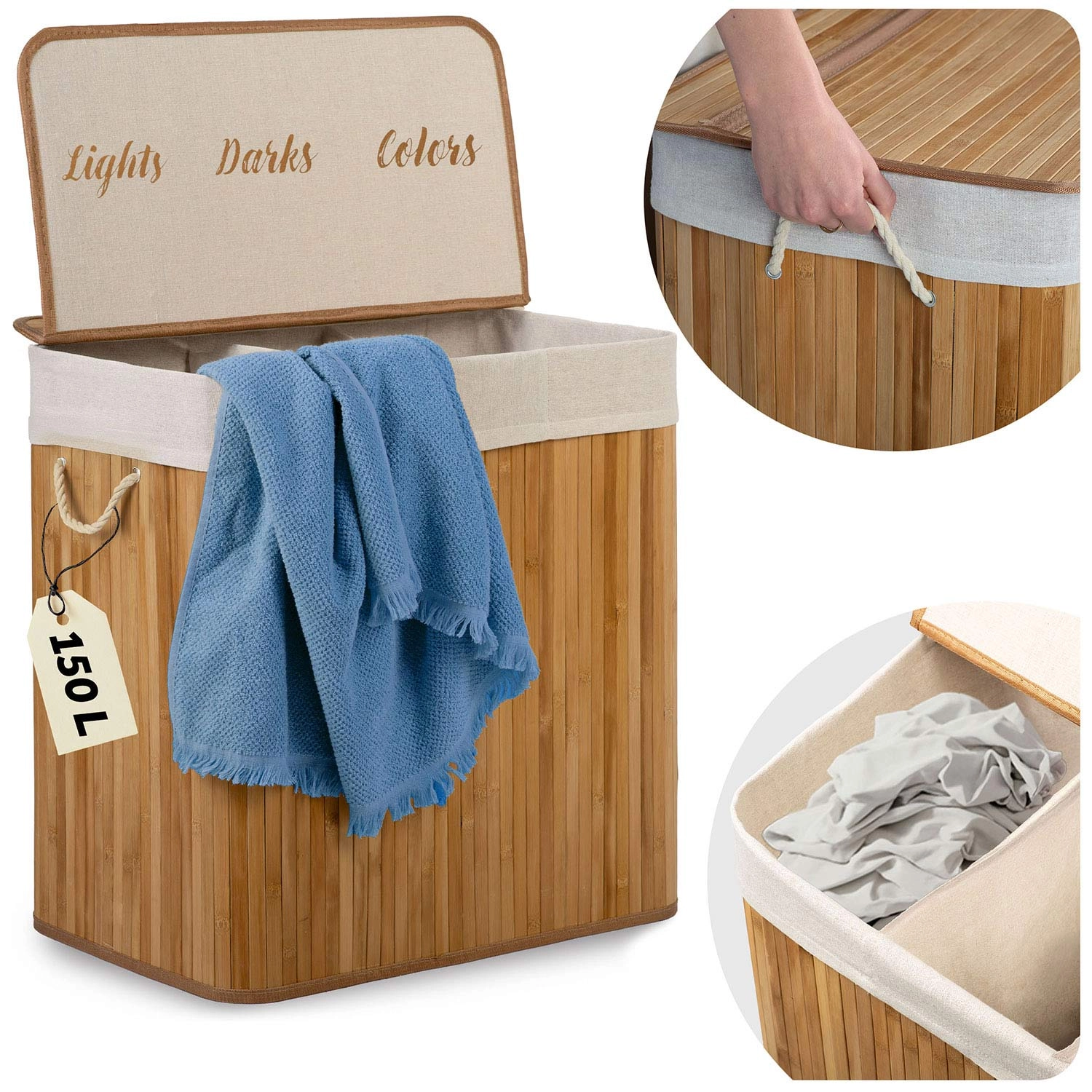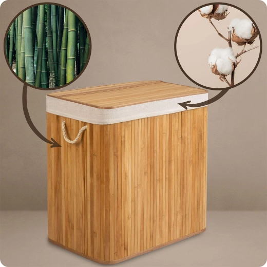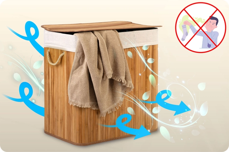 Bambusul natural și bumbacul respirabil susțin circulația aerului și ajută la reducerea umezelii și a mirosurilor nedorite. Detalii gândite precum mânerele solide din frânghie, capacul detașabil, sacul detașabil cu posibilitate de legare și fundul plin stabil transformă coșul într-un ajutor rezistent pentru fiecare zi.