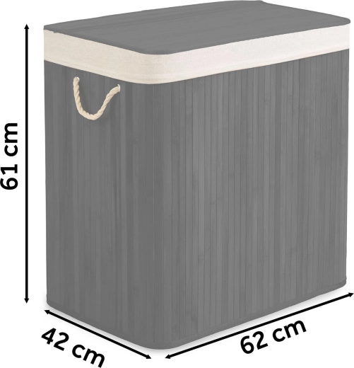 Adu ordine în rutina de spălat cu un coș elegant din bambus, cu un volum de 150 l și sortare pe 3 compartimente pentru rufe deschise la culoare, închise și colorate. Datorită bambusului natural, coșul este rezistent la umiditate, solid și stilat, iar sacul textil din bumbac, detașabil, permite transportul facil al rufelor direct la mașina de spălat, fără mizerie.