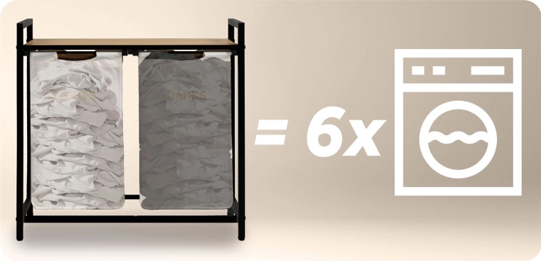 Economisiți timp datorită celor doi saci separați – rufele deschise la culoare și cele închise le sortați încă de la introducere. Marcajele clare ușurează utilizarea zilnică pentru întreaga familie.