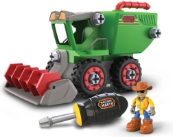Setul conține o șurubelniță pentru copii și șuruburi mari din plastic pentru asamblarea și dezasamblarea ușoară a utilajelor – ideal pentru dezvoltarea motricității fine.