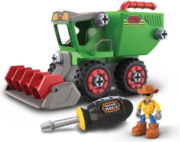 Asamblează, desfiletează și construiește din nou! Setul de construcție cu șuruburi MACHINE MAKER – Fermă le oferă copiilor posibilitatea de a înțelege cum funcționează utilajele din câmp. Datorită șuruburilor mari din plastic și șurubelniței incluse, montajul este ușor și distractiv, dezvoltând răbdarea și coordonarea mână–ochi.