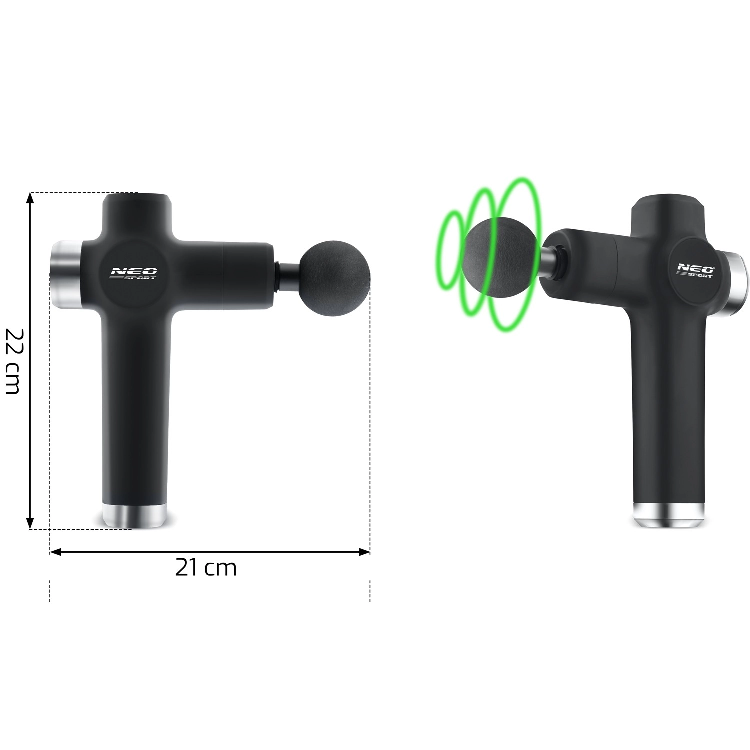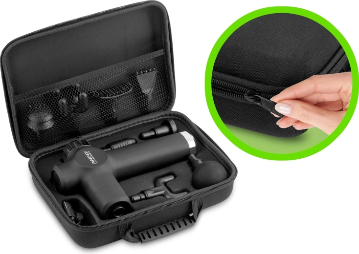NEO SPORT NS-501 este un pistol de masaj compact pentru alinarea zilnică a mușchilor înțepeniți, regenerare rapidă după antrenament și un plăcut ritual de masaj relaxant. Mânerul ergonomic în T se potrivește perfect în mână, funcționarea silențioasă nu deranjează pe nimeni, iar protecția inteligentă a motorului previne suprasarcina la presiune excesivă.