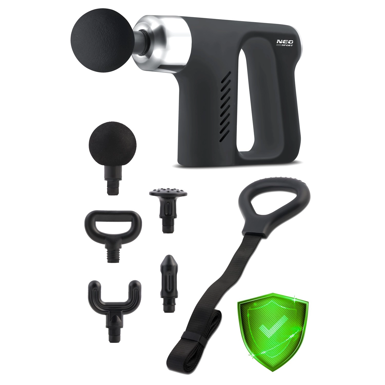 Pistolul de masaj NEO Sport NS-502, puternic, oferă o ameliorare rapidă a tensiunii musculare și sprijină recuperarea după antrenament sau o zi lungă la birou. Datorită celor 5 capete și unei curele de masaj practice, poți viza cu ușurință diferite zone ale corpului. Design ergonomic, funcționare silențioasă, până la 4 ore autonomie și încărcare USB‑C îl fac un partener ideal acasă și în călătorii. Siguranța este asigurată de protecție la suprasarcină și supraîncălzire și oprire automată.