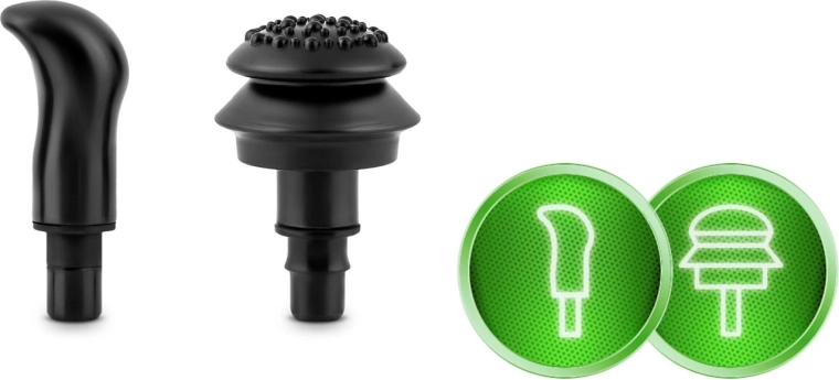 Furcă pentru zona coloanei și a tendonului lui Ahile, cap sferic pentru mușchi mari, cap plat pentru țesuturi tensionate, proiectil pentru presiune punctuală și alte capete specializate.