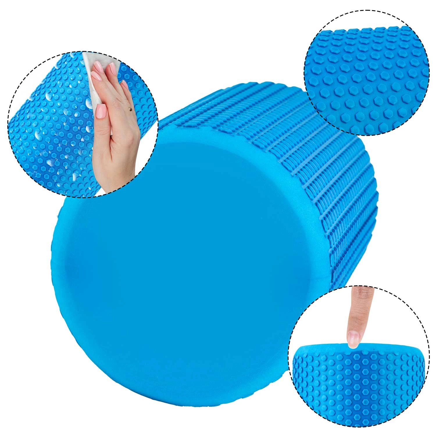 Suprafața texturată cu proeminențe stimulează țintit mușchii, reduce rigiditatea și susține flexibilitatea după antrenament sau perioade îndelungate de stat jos.