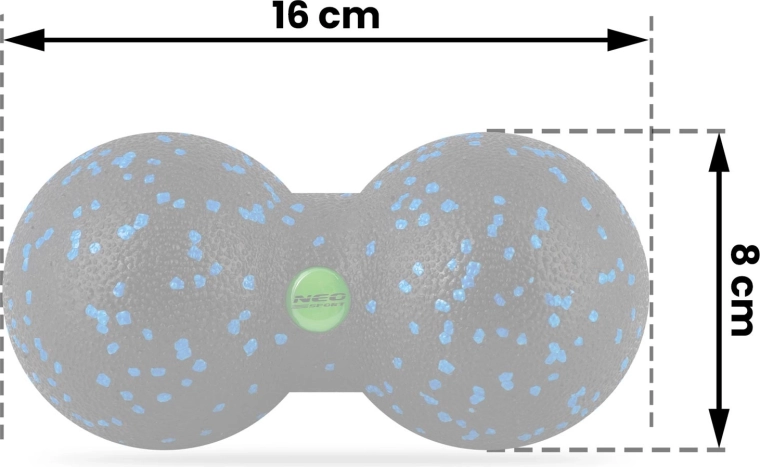 Mingea dublă de masaj „peanut” NEO-SPORT este concepută pentru automasaj eficient al mușchilor de-a lungul coloanei, gâtului, gambelor, coapselor și umerilor. Spuma EPP tare și durabilă oferă presiune țintită, în timp ce șanțul central protejează coloana. Dimensiunile compacte asigură utilizare și transport ușor – ideală pentru sportivi și începători.